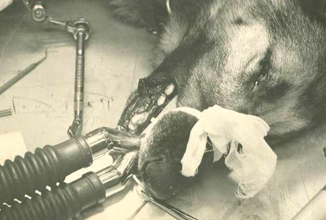 Late one steamy Cam Ranh Bay AB afternoon, I returned to my hooch to find my roommate, Dr. Victor E. Anspaugh " bummed" over a disagreement he had had with his supervisor. Vic was the junior "Vet" assigned to the 483rd USAF Hospital back in '71. His boss intended to "put down" one of the Sentry Dogs that had recently lost 13 pounds and would no longer bite during attack training. The Major's diagnosis was Kidney failure but Vic insisted that the dog was suffering from gastritis secondary to severe dental problems. Vic asked me if I'd look at "Old Rex". In true "MASH" fashion (which is how everything seemed to work at the 483rd Hospital) I, of course, said yes.