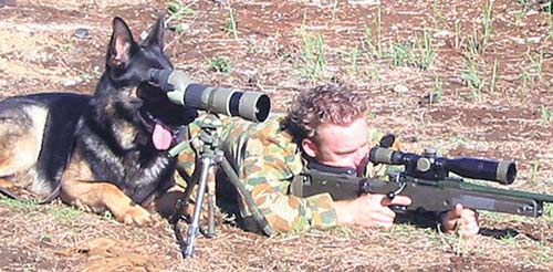 The latest version has increased the off leash attack range. Superior eyesight allows the dog to spot and assist the handler in applying a 7.62 mm bite. The damage is on a smaller scale than the earlier version but much more precise. Collateral damage has also been reduced unless felines are spotted. Then all bets are off!.